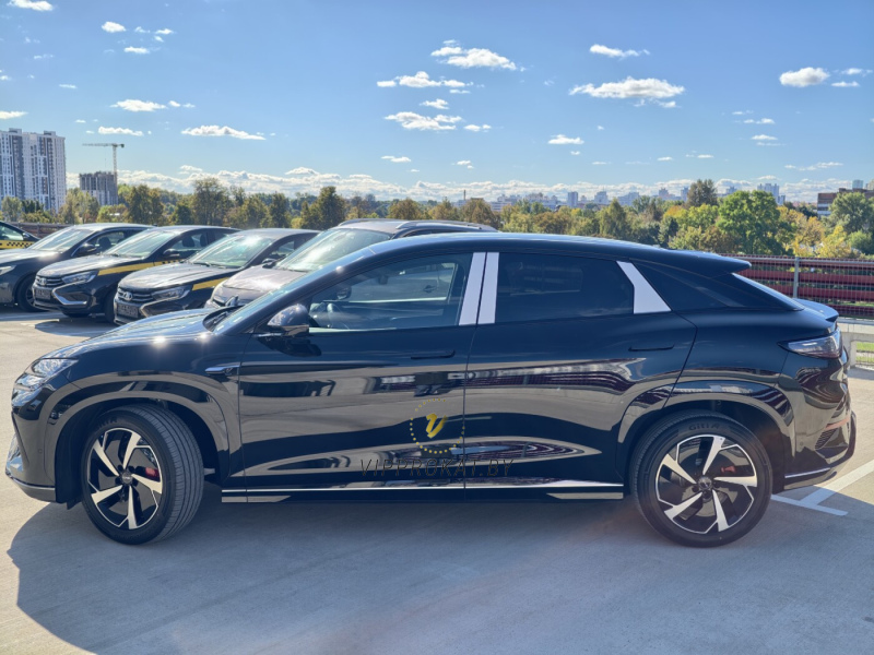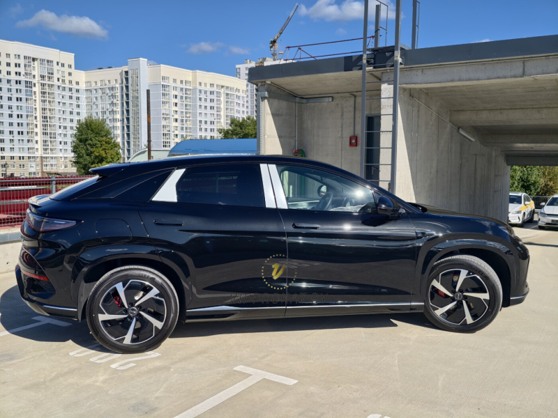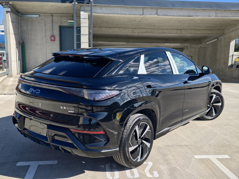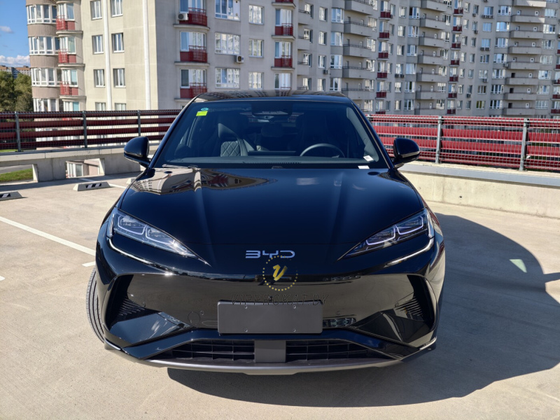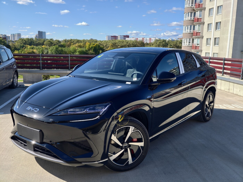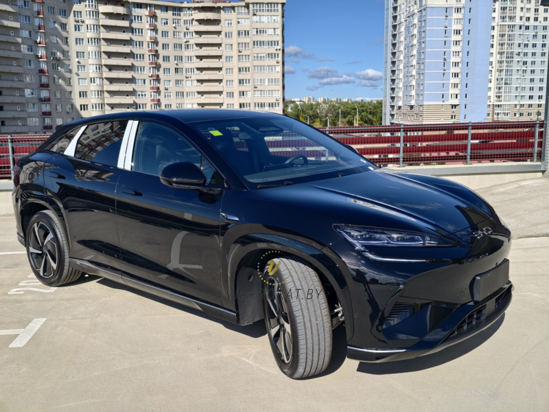 В наличии автомобиль BYD Sea Lion 07 EV 2025 – 610 Zhihang Edition, 2025 года выпуска. Черный цвет кузова, рыжий салон.